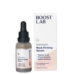 Boost Lab neck firming serum lifts and smooths sagging skin, supports collagen production and improves skin elasticity and firmness.